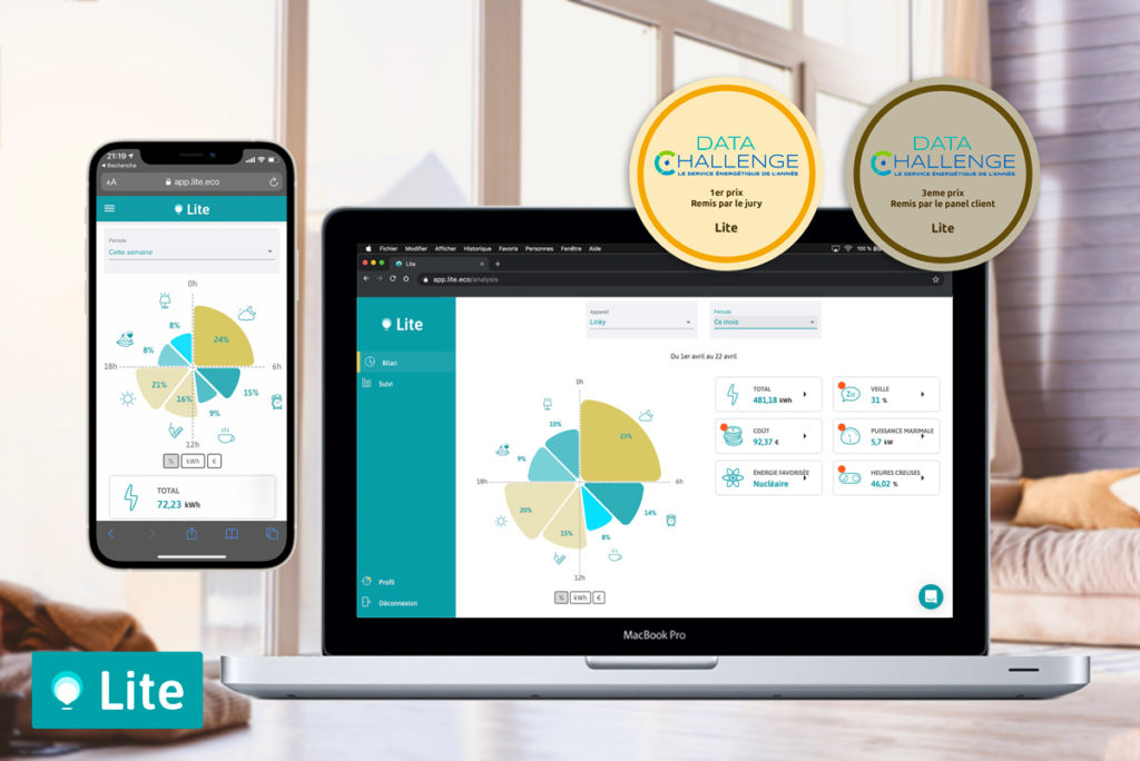 Lite est un service en ligne qui permet aux particuliers de suivre et d’analyser leur consommation d’électricité pour réduire leur consommation. Cette solution ne nécessite que d’avoir un compteur Linky. Lite permet d’identifier les économies possibles pour réduire sa facture d’électricité, grâce à un suivi de long terme et au croisement de différentes sources de données.